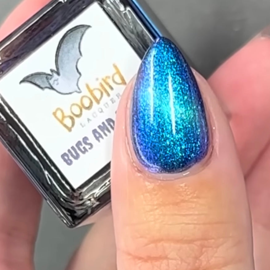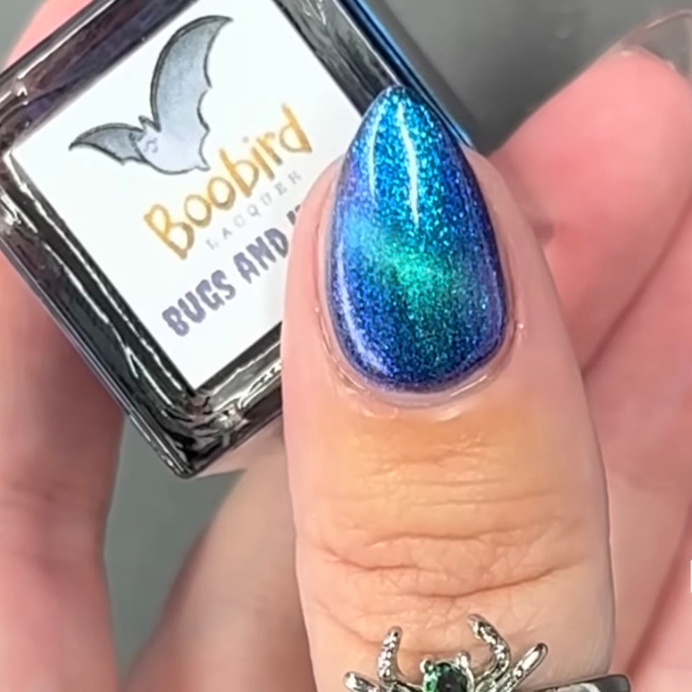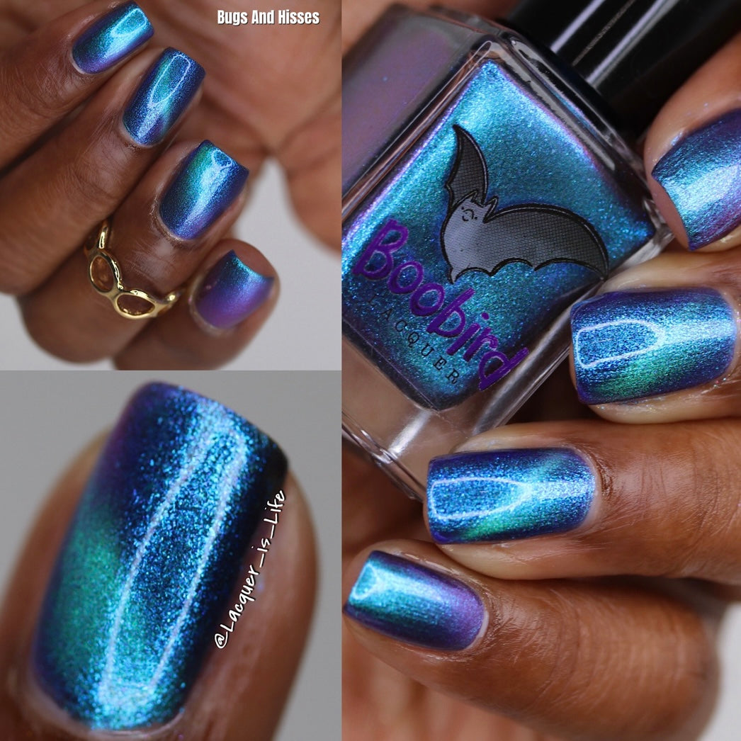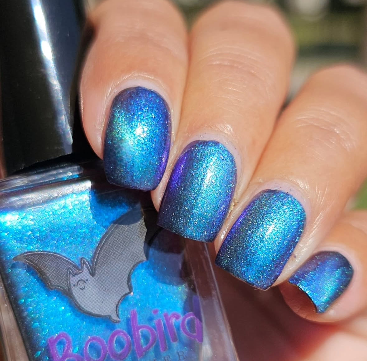 A magnetic multi chrome that shifts cyan to purple with sparkly blue micro flakes