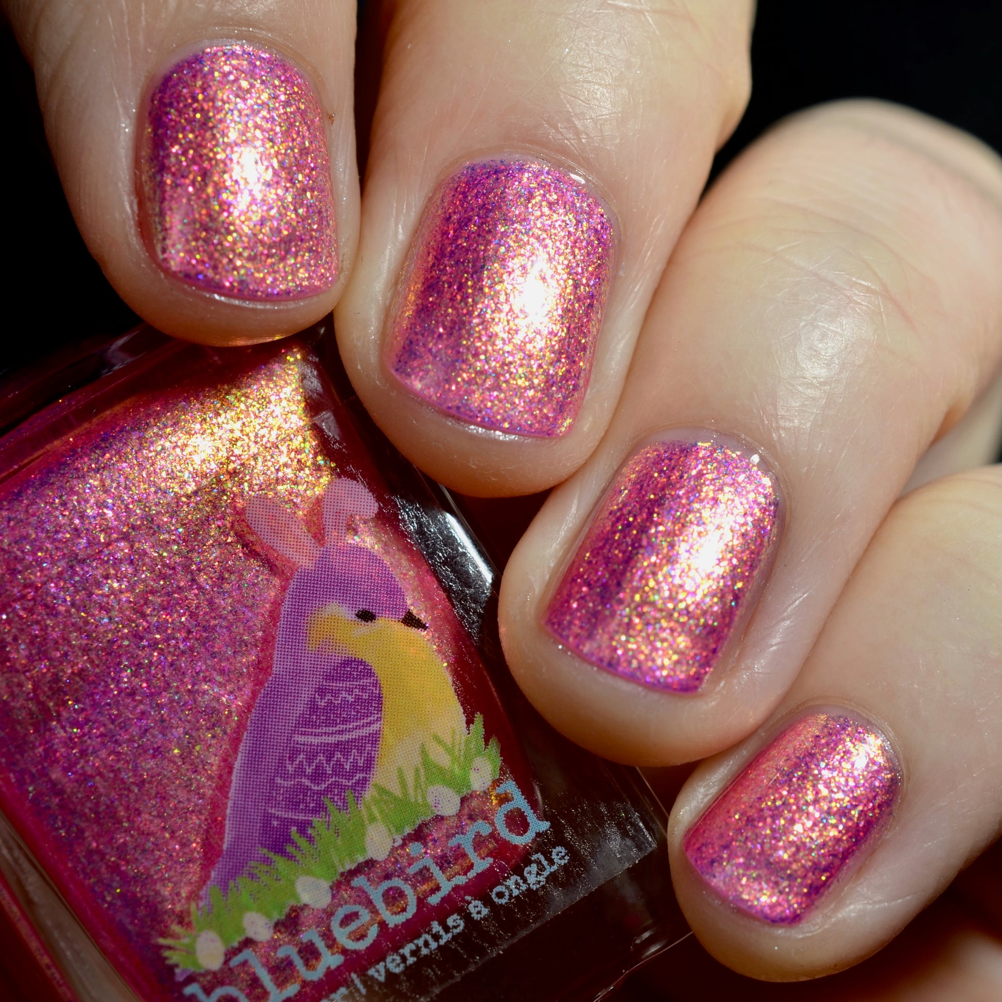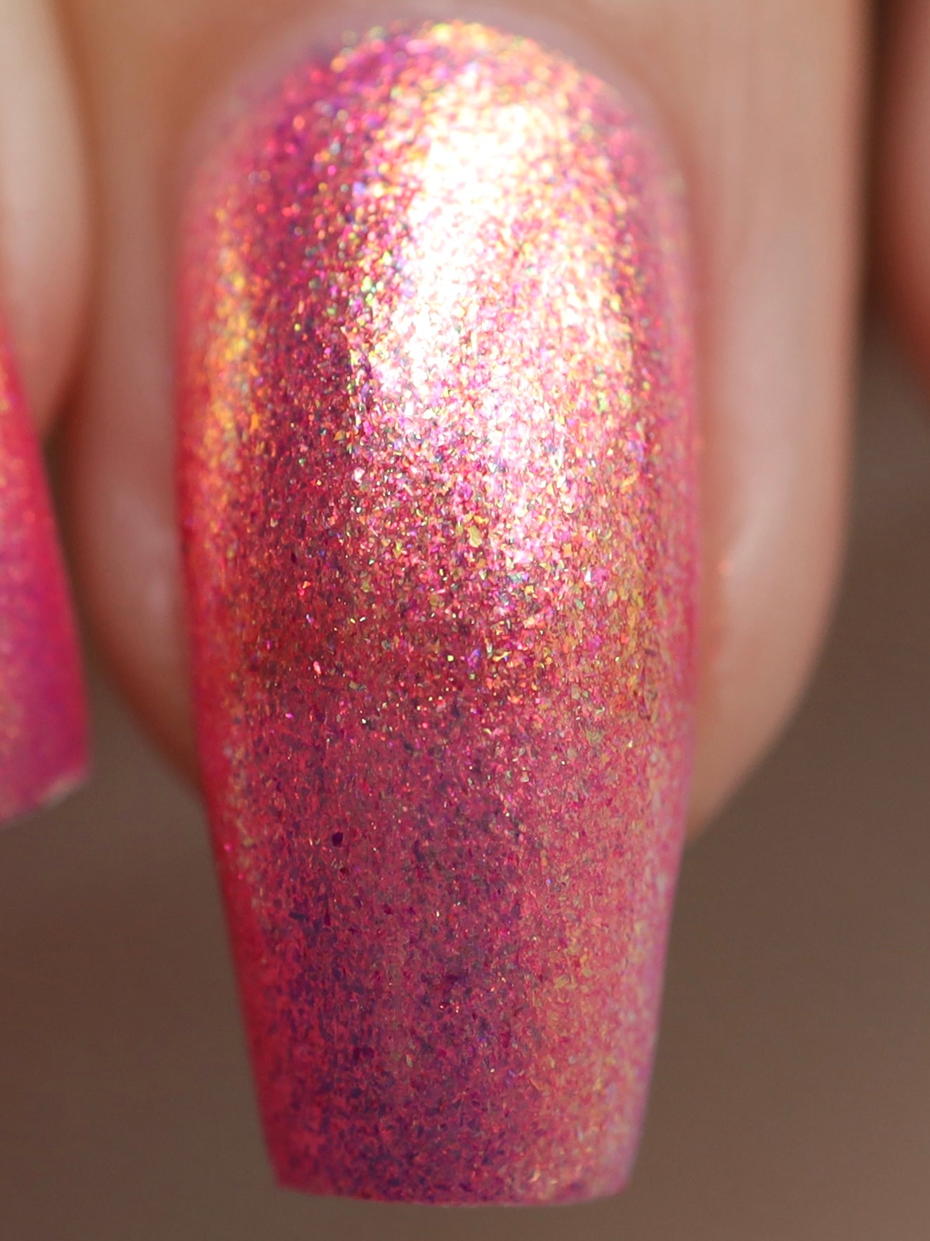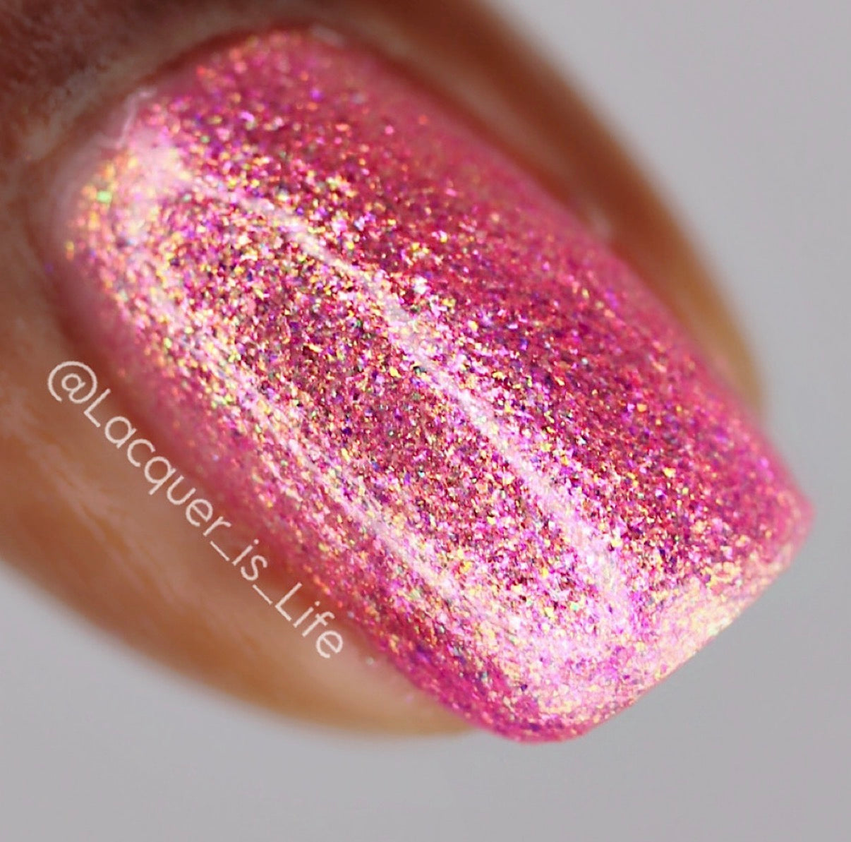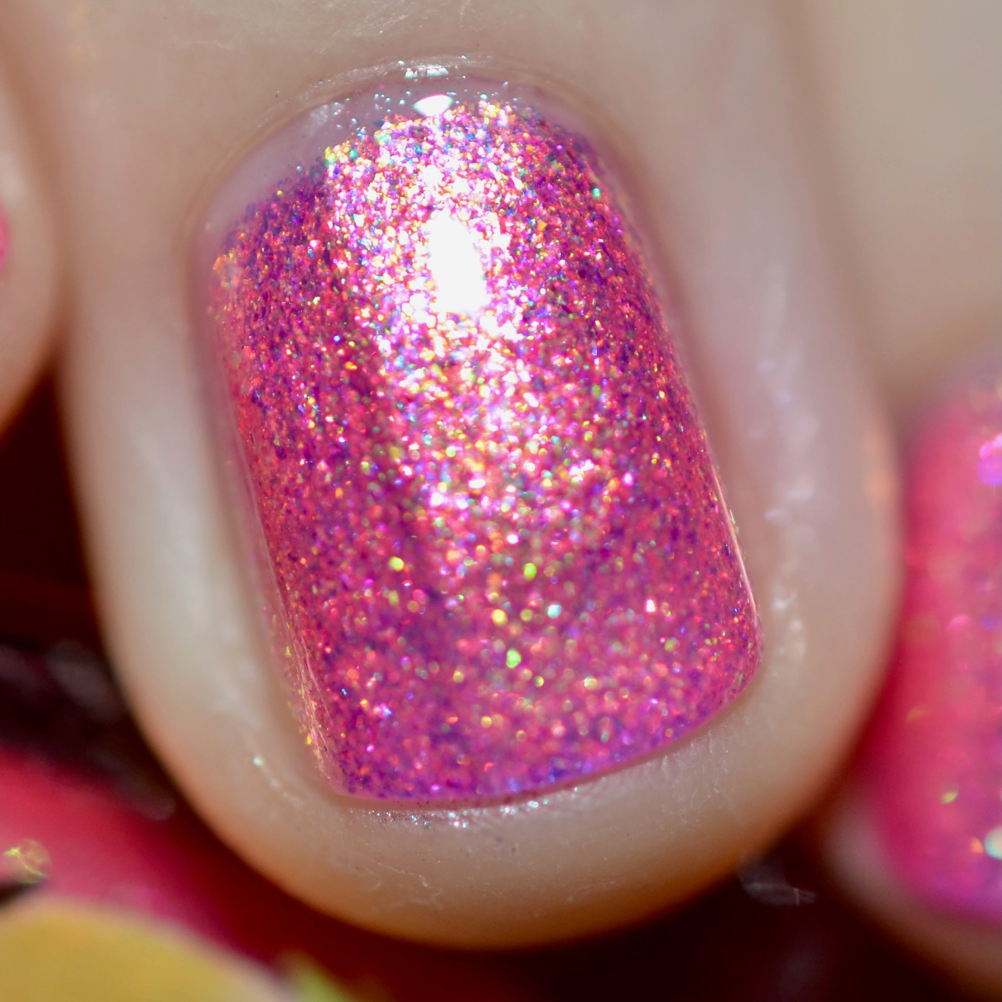 This is a hot pink with a yellow-green large particle shimmer.