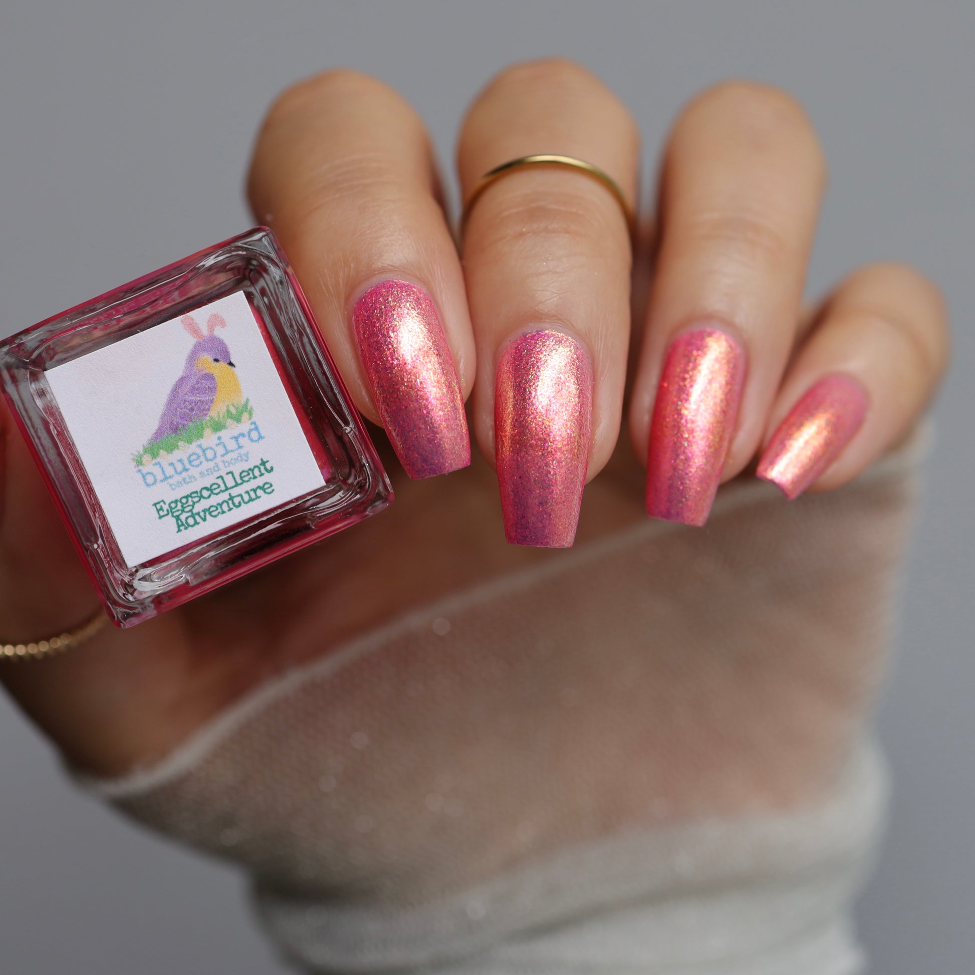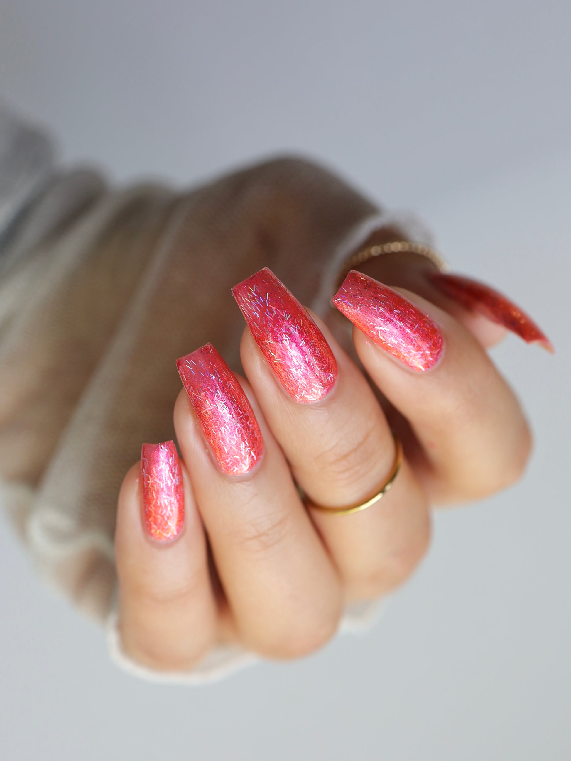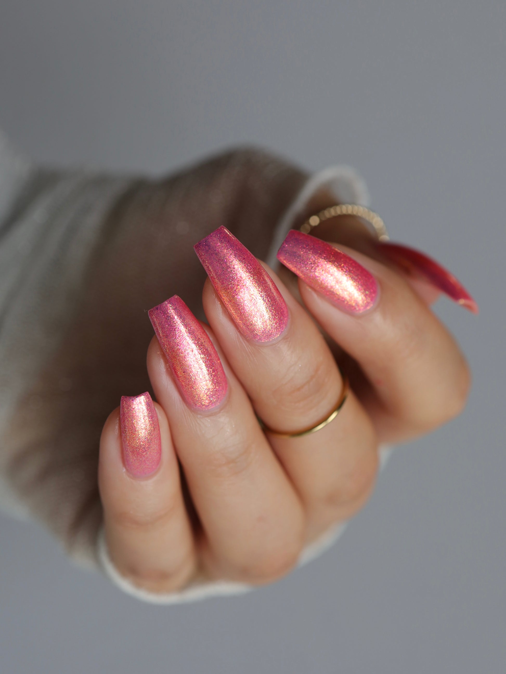 Differences in lighting, skin tone, and nail shape can slightly alter how this polish looks in pictures, but they all depict the same shade and formula
