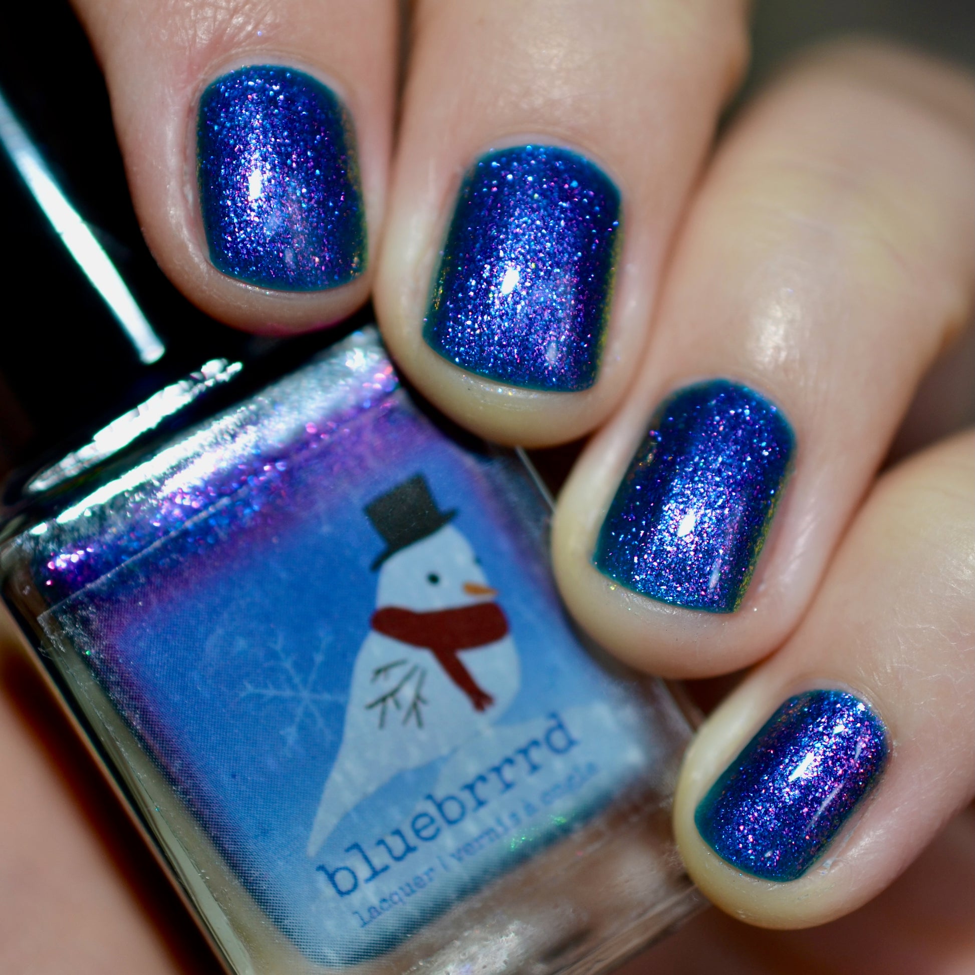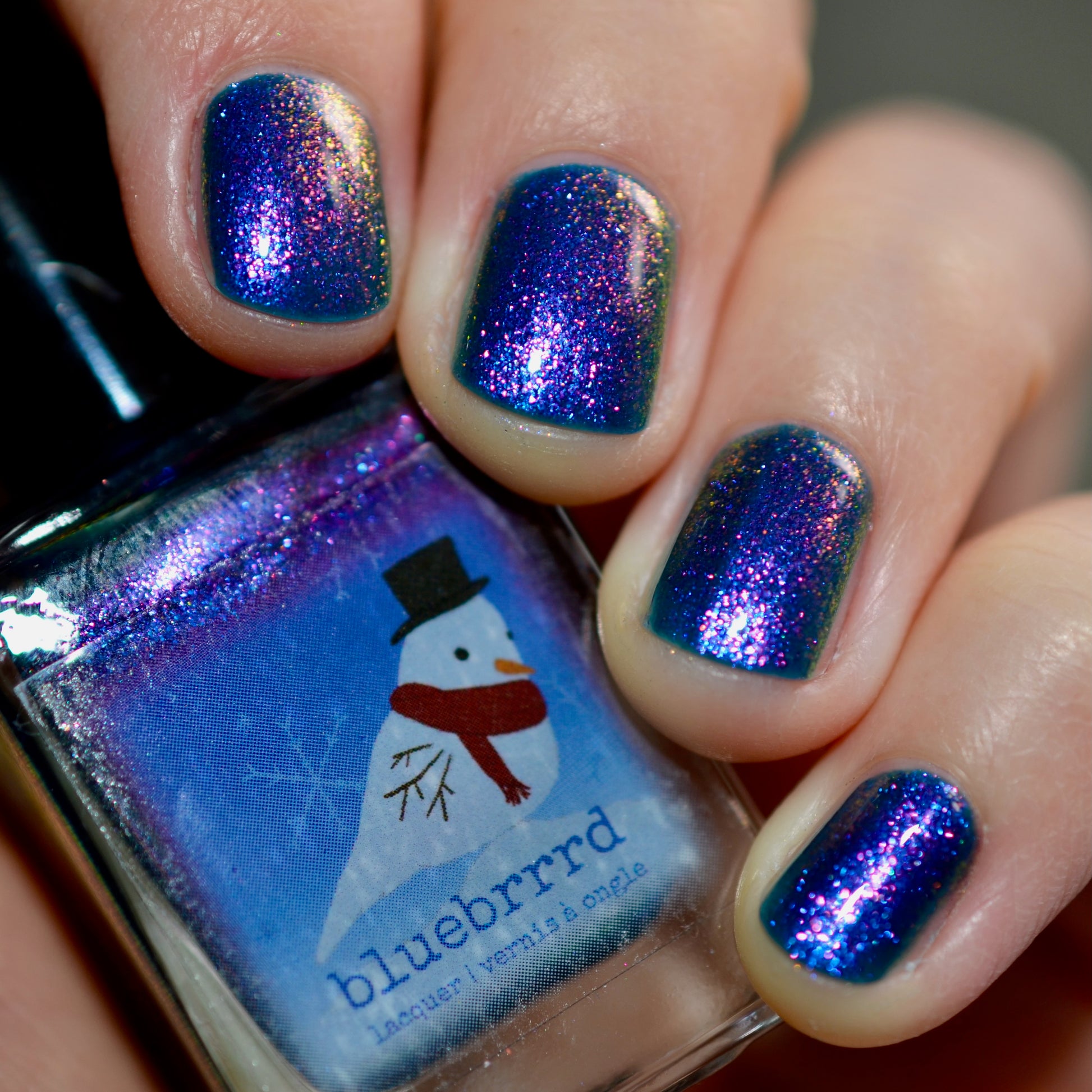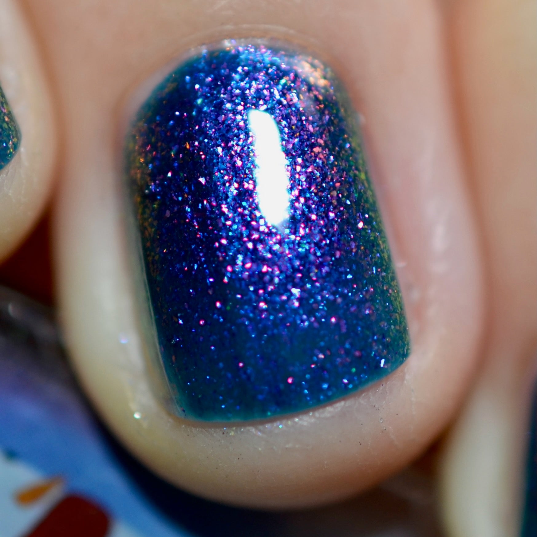 Ski You Later was a polish from the 2025 Holiday Advent it is a teal jelly with a large particle purple-blue-green shifting shimmer