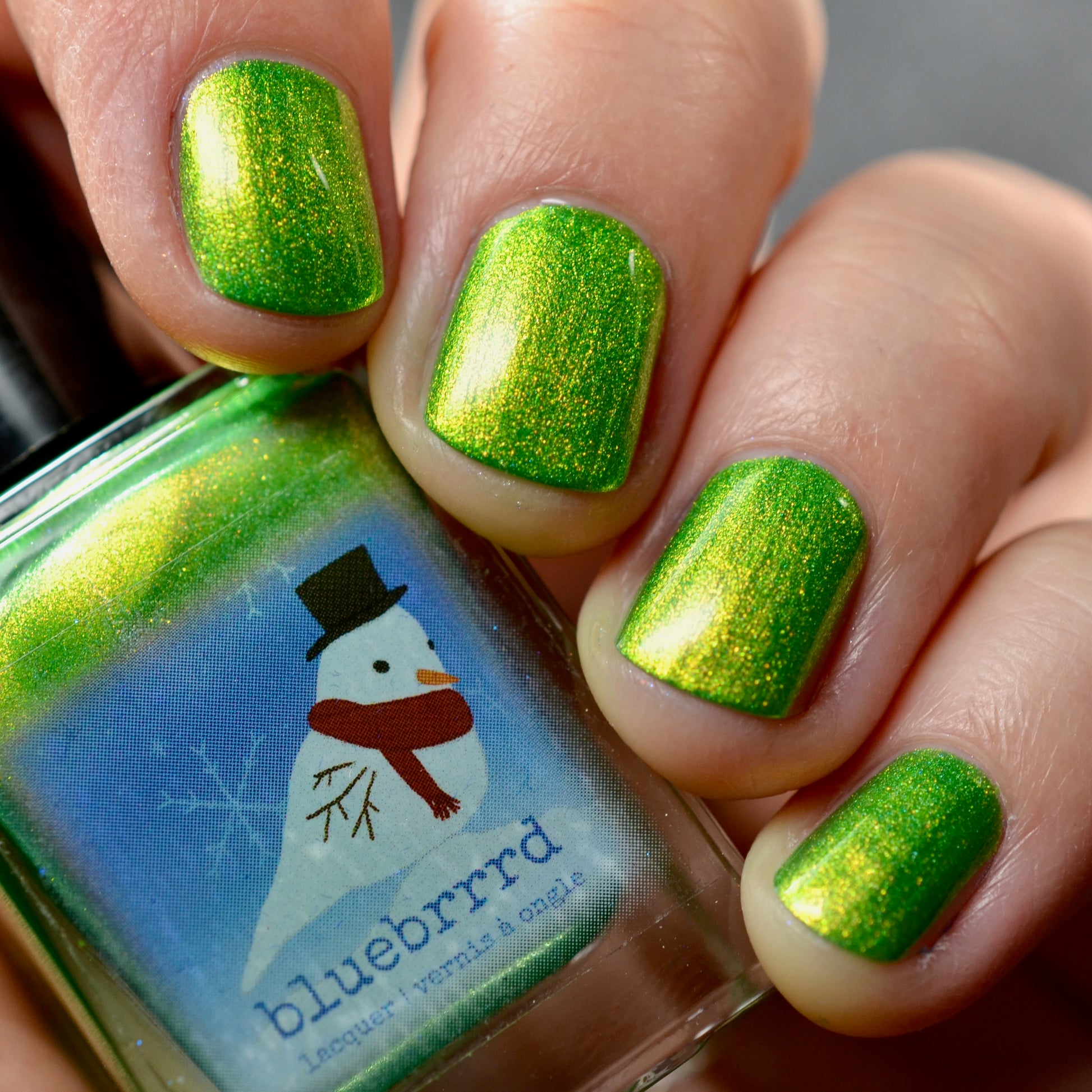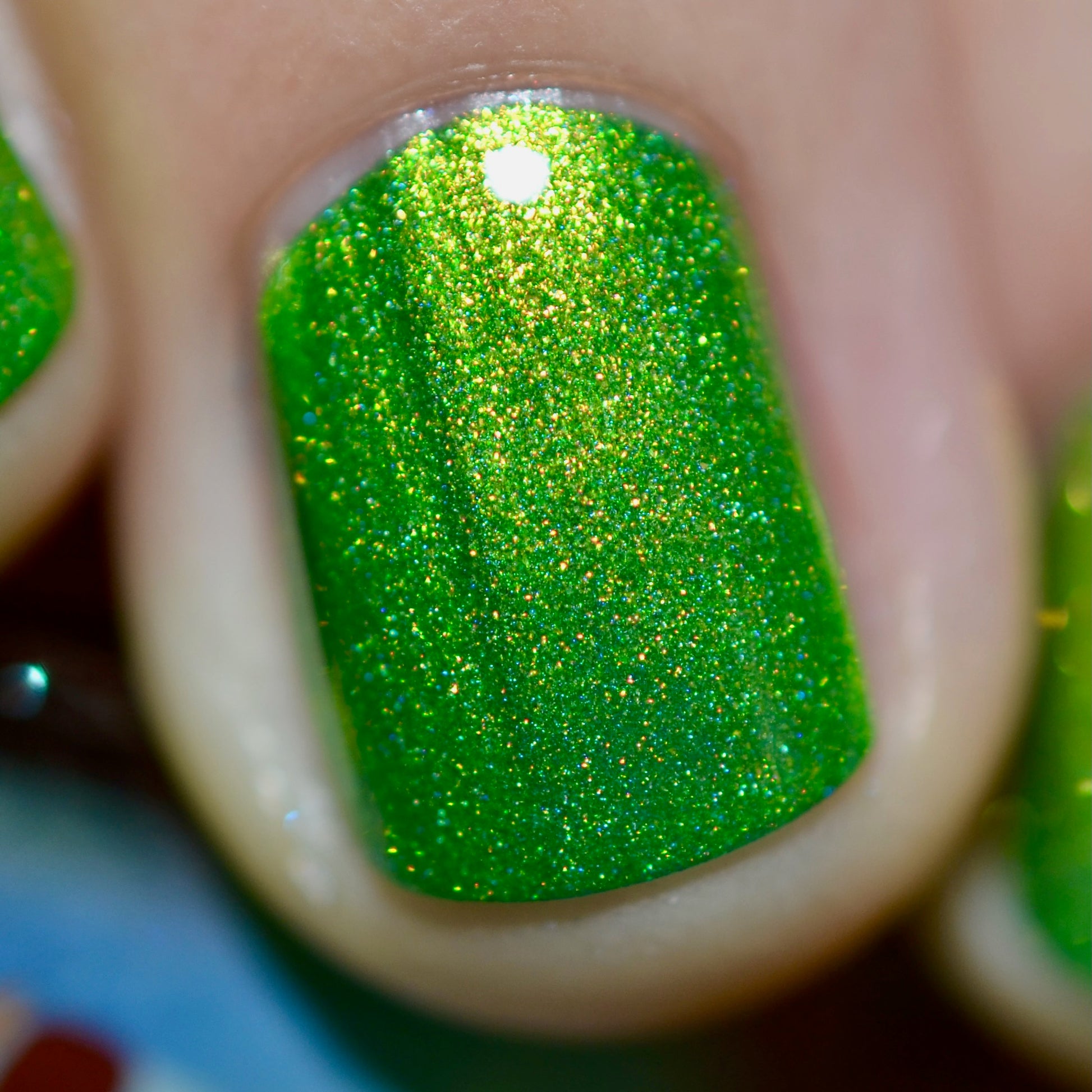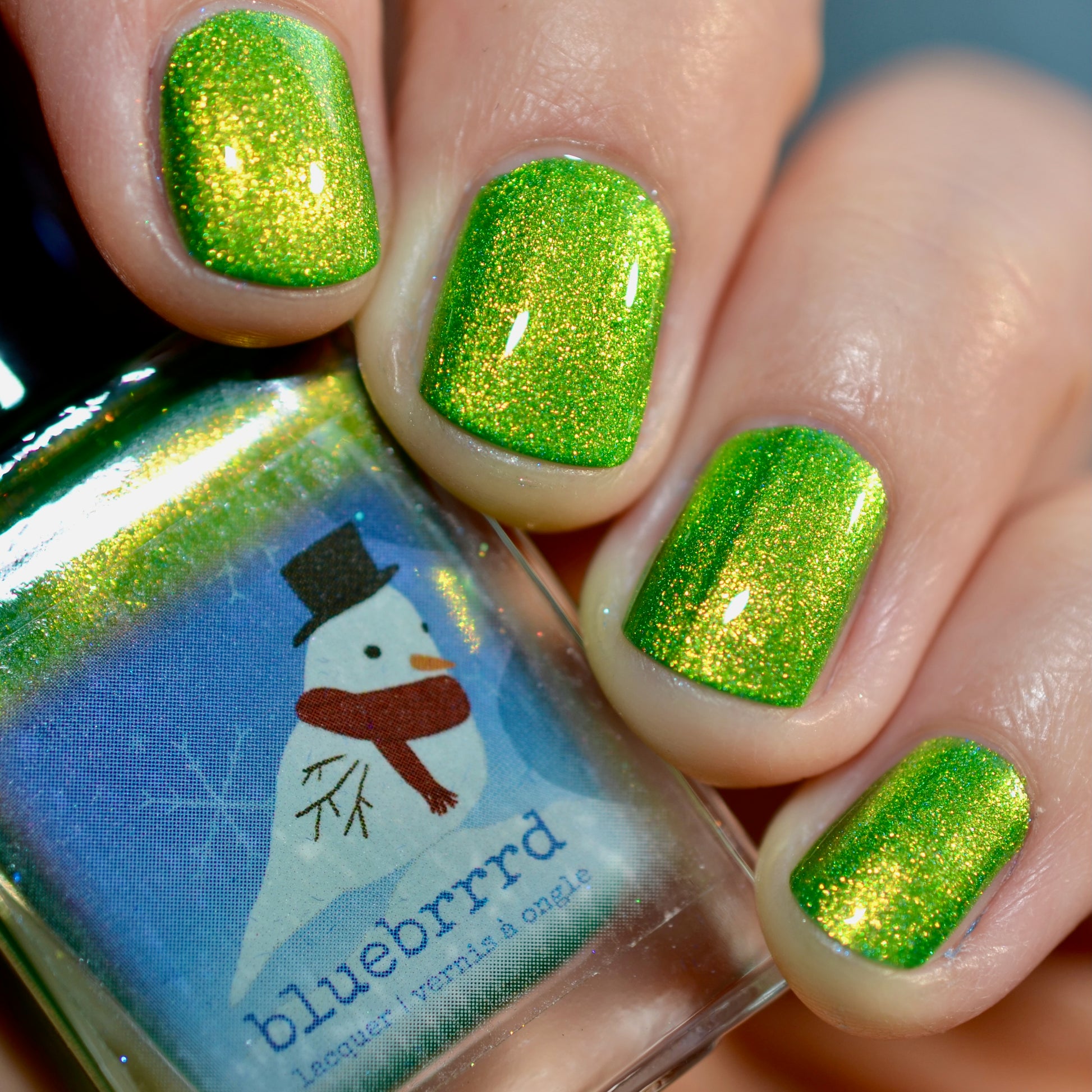 This Evenings Wintertainment was a polish from the 2025 Holiday Advent it is glowy bright green with a gold-green shifting shimmer